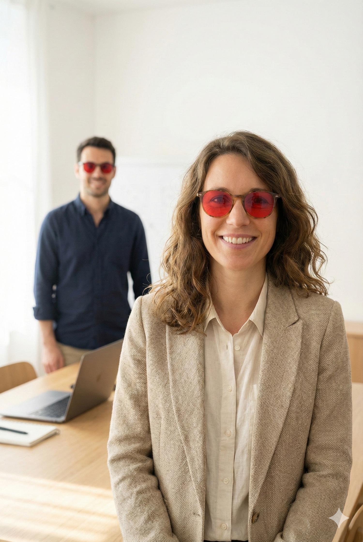Je suis Clara, fondatrice de Vironian. L’idée est née après des années à travailler devant des écrans jusqu’à en avoir les yeux qui brûlent le soir, le sommeil coupé et la tête lourde au réveil. J’ai cherché une solution simple, élégante et efficace… et c’est ainsi qu’avec mon compagnon de route Julien, nous avons décidé de créer nos lunettes qui bloquent la lumière bleue.