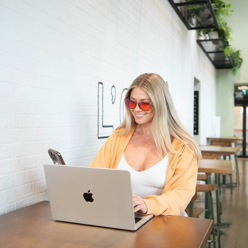 En les portant simplement 1 à 2 heures avant de vous coucher, les verres rouges bloqueront la lumière à courte longueur d'onde émise par vos appareils, ce qui réduit la fatigue oculaire, favorise un sommeil plus profond et vous permet de vous réveiller avec plus d'énergie.
